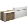 - Quầy tiếp tân sử dụng chất liệu gỗ công nghiệp MFC phủ melamine với màu sắc tươi sáng, sang trọng song song với chất liệu bền bỉ, dễ lau chùi vệ sinh.