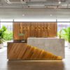 - Quầy tiếp tân với thiết kế tối giản nhưng không kém phần sang trọng. Không chỉ được sử dụng với công năng sẵn có mà quầy lễ tân còn thể hiện được bộ mặt tinh tế của công ty, văn phòng làm việc.